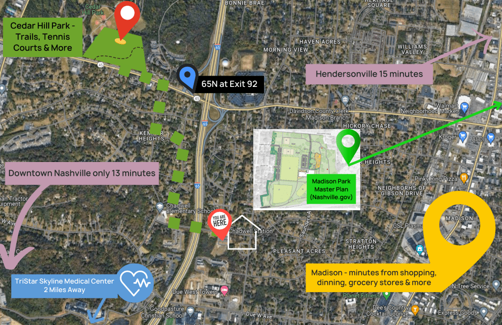 These gorgeous new construction homes offer three contemporary designs and top-notch amenities, set against the backdrop of a sprawling 5-acre open reserve. Just a quick 15-minute trip to Nashville, enjoy the best of urban excitement and suburban tranquility. With Madison Park, Madison Station Boulevard Park, and Cedar Hill Park nearby, nature is always within reach. Plus, a new pocket park next door provides a cozy retreat right at your doorstep. Chadwell Station isn’t just a place to live; it’s an up and coming community perfect for discerning homebuyers. Experience it for yourself – schedule your tour today!